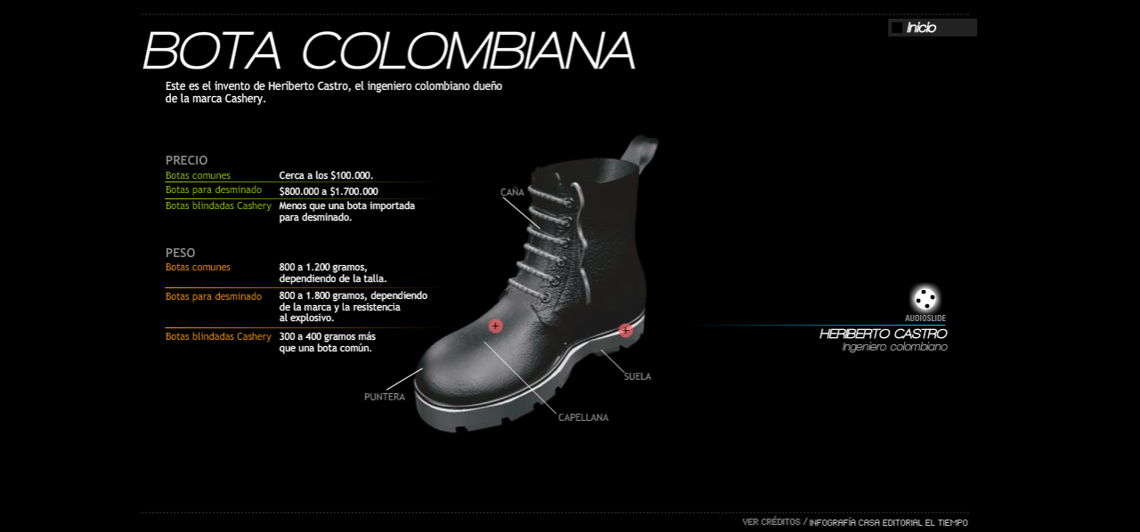 Es así como el Tiempo.com publicó una infografía sobre “Colombia, país con más víctimas por minas”, en esta infografía se ve la explicación tan detallada acerca de las minas, sus consecuencias, en el inicio contiene 6 títulos los cuales son interactivos